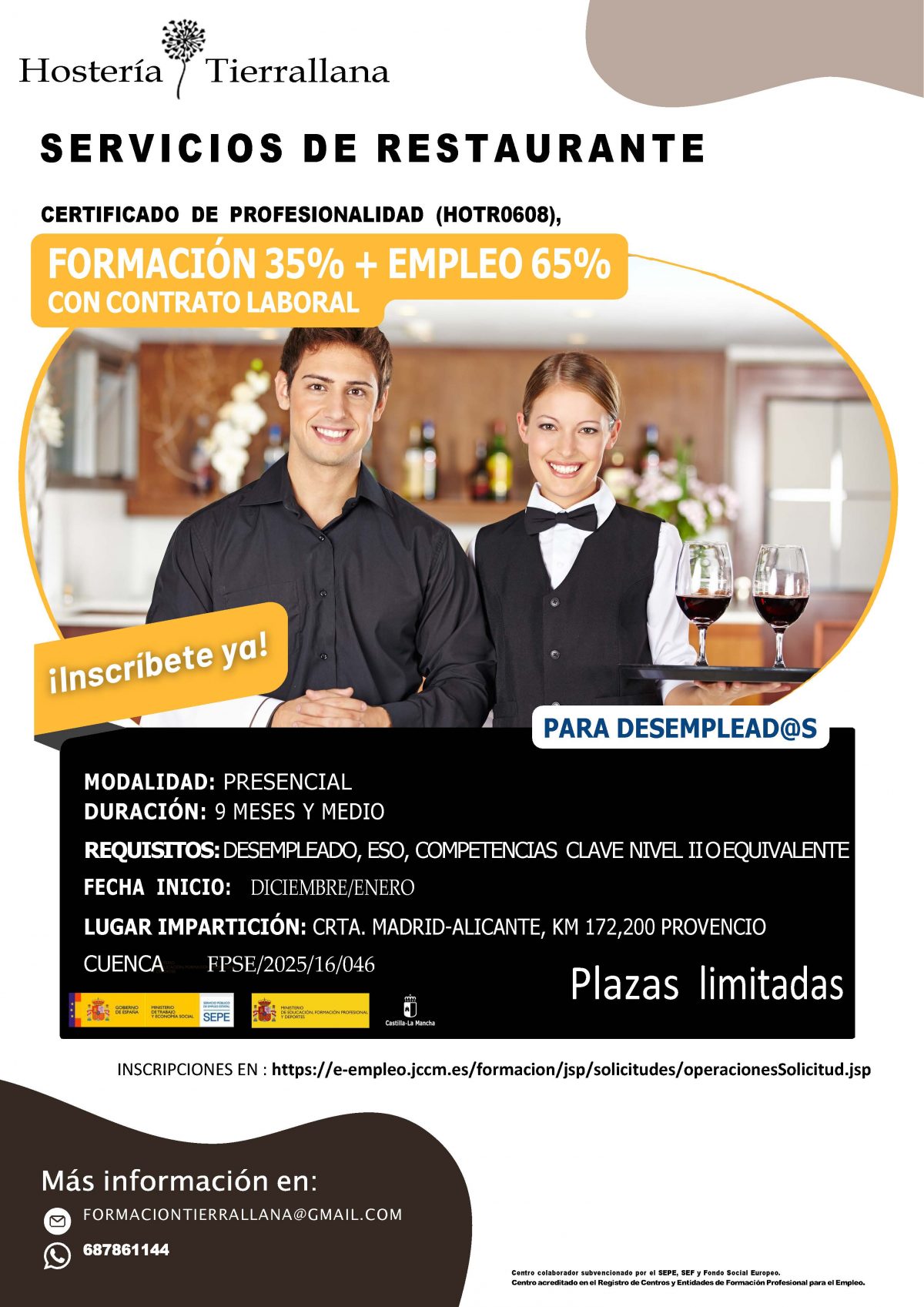 Si te interesa este curso y deseas obtener más información puedes llamar al teléfono de la Agencia de Colocación 967 14 50 74