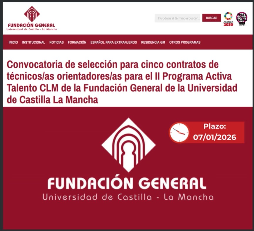 Convocatoria de selección para cinco contratos de TÉCNICOS/AS ORIENTADORES/AS para el II Programa Activa Talento CLM de la Fundación General de la Universidad de Castilla-La Mancha.