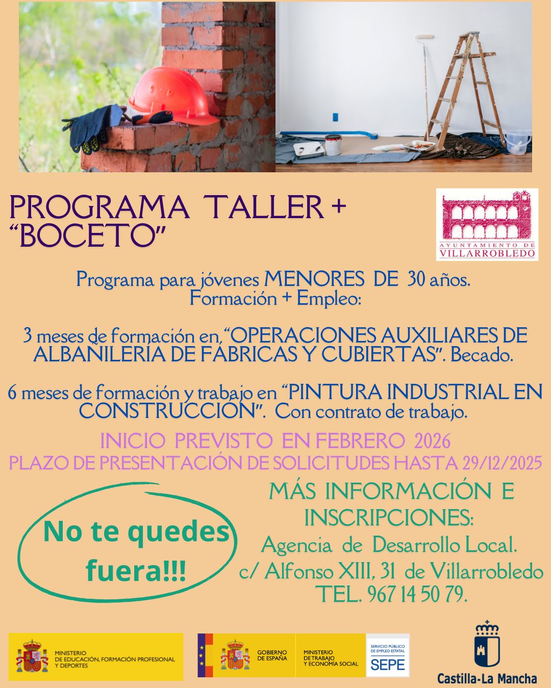 La Agencia de Desarrollo Local pone en marcha el Taller + «Boceto». Es un programa de formación y empleo para menores de 30 años. Preferentemente personas sin estudios.