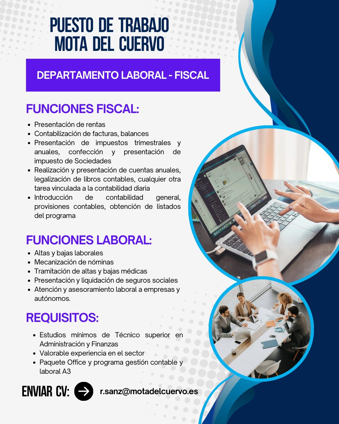 Las personas interesadas deben enviar el cv a r.sanz@motadelcuervo.es