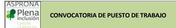 Compartimos una publicación de ASPRONA en La Roda para un/a Técnico/a Cuidador/a URGENTE.